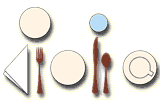 อุปรกร์ตักอาหาร : ช้อน , ส้อม , ส้อมสำหรับตักสลัด , มีดตัดอาหาร , มีดตัดขนม (วางบนจานขนม)